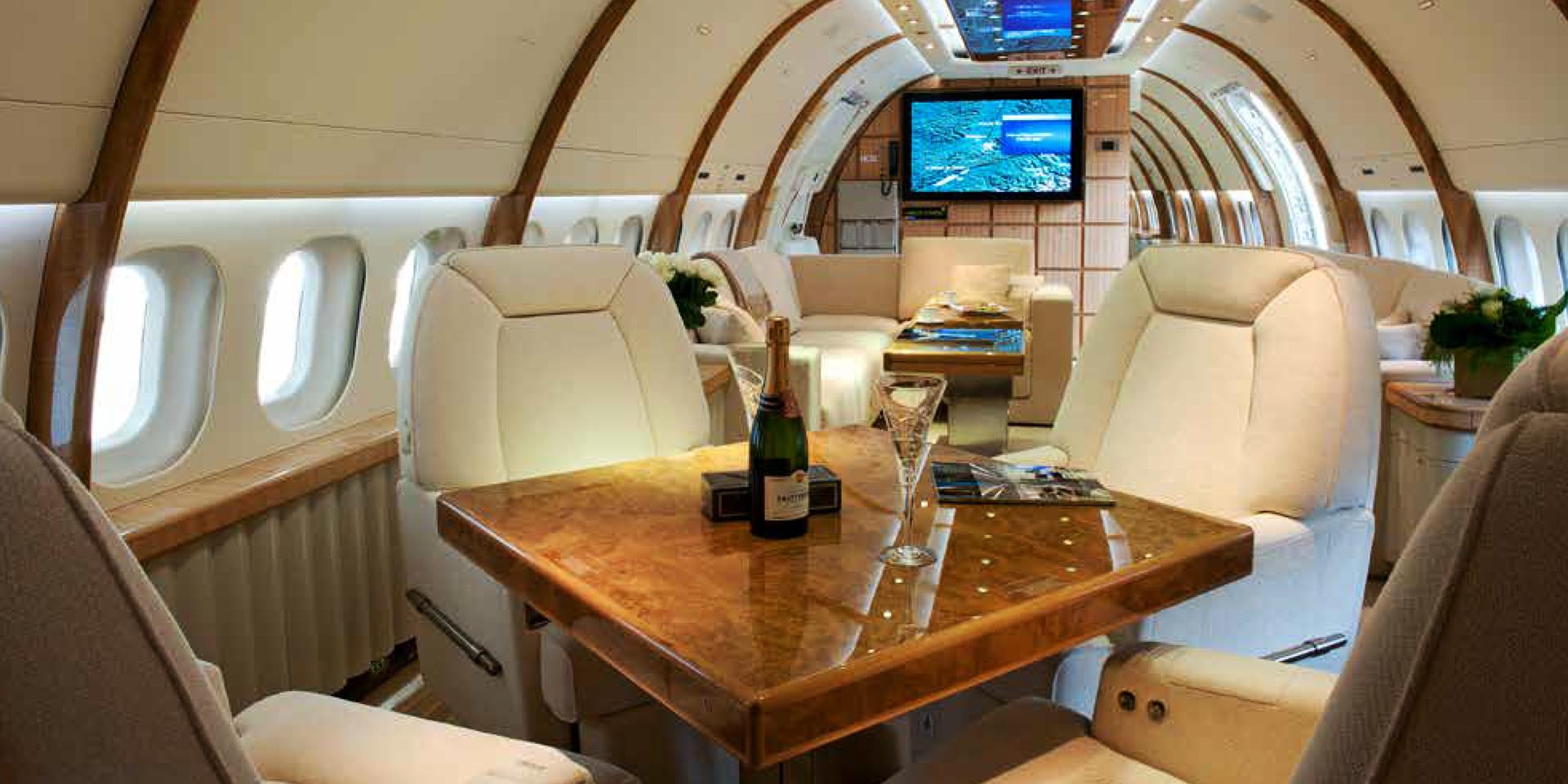- Eight (8) Full Flat Business Class Seats with Overhead Storage Bins
